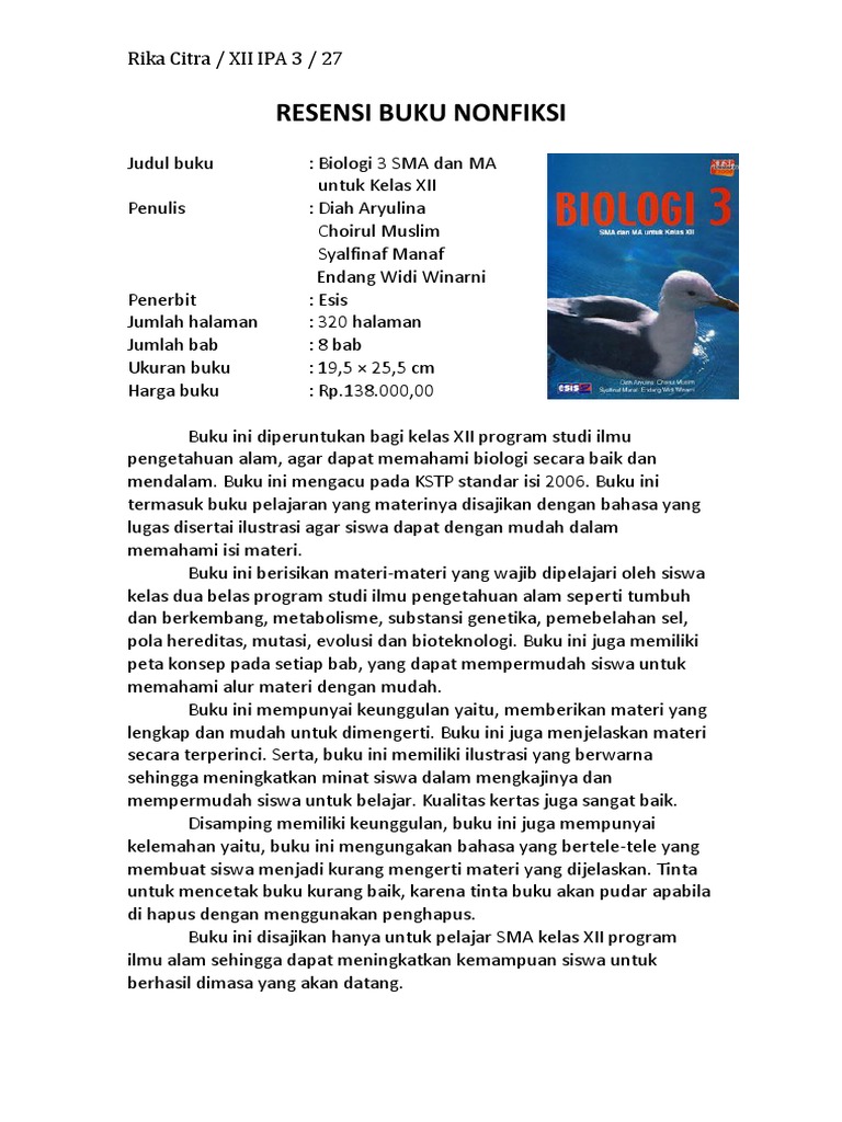 Resensi Buku Nonfiksi Esis Biologi Kelas 3 Sma Pdf